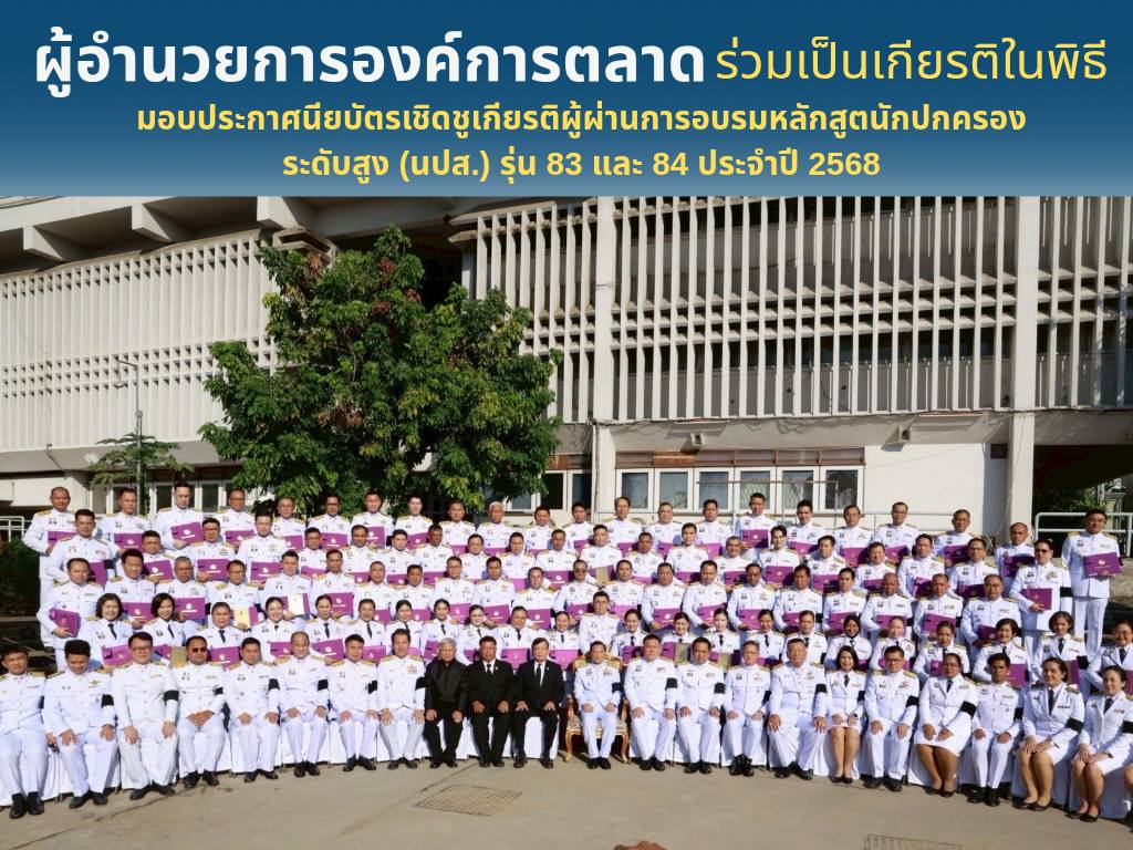 ผู้อำนวยการองค์การตลาด ร่วมเป็นเกียรติในพิธีมอบประกาศนียบัตรเชิดชูเกียรติผู้ผ่านการอบรมหลักสูตรนักปกครองระดับสูง (นปส.) รุ่น 83 และ 84 ประจำปี 2568 วันที่ 23 มกราคม 2569 เวลา 14.00 น. ณ ห้องประชุมราชบพิธ ชั้น 5 อาคารดำรงราชานุสรณ์ กระทรวงมหาดไทย นายบูรณิศ ยุกตะนันทน์ ผู้อำนวยการองค์การตลาด ร่วมเป็นเกียรติในพิธีปิดและมอบประกาศนียบัตรเชิดชูเกียรติผู้ผ่านการอบรมหลักสูตรนักปกครองระดับสูง (นปส.) ประจำปี 2568