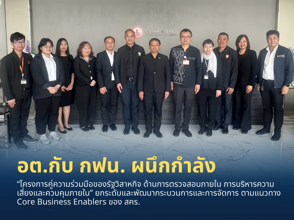 อต.กับ กฟน. ผนึกกำลังภายใต้ “โครงการคู่ความร่วมมือของรัฐวิสาหกิจ ด้านการตรวจสอบภายใน การบริหารความเสี่ยงและควบคุมภายใน” ยกระดับและพัฒนากระบวนการและการจัดการ ตามแนวทาง Core Business Enablers ของ สคร. มุ่งแลกเปลี่ยน เรียนรู้ สร้างโอกาส และมุ่งพัฒนาศักยภาพบุคลากรและระบบการทำงานขององค์กรให้มีประสิทธิภาพ โปร่งใส