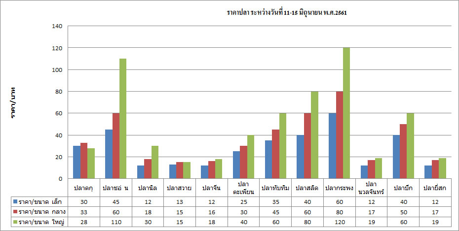 | ประเภทของปลา | ราคา/ขนาด | หมายเหตุ | ||
